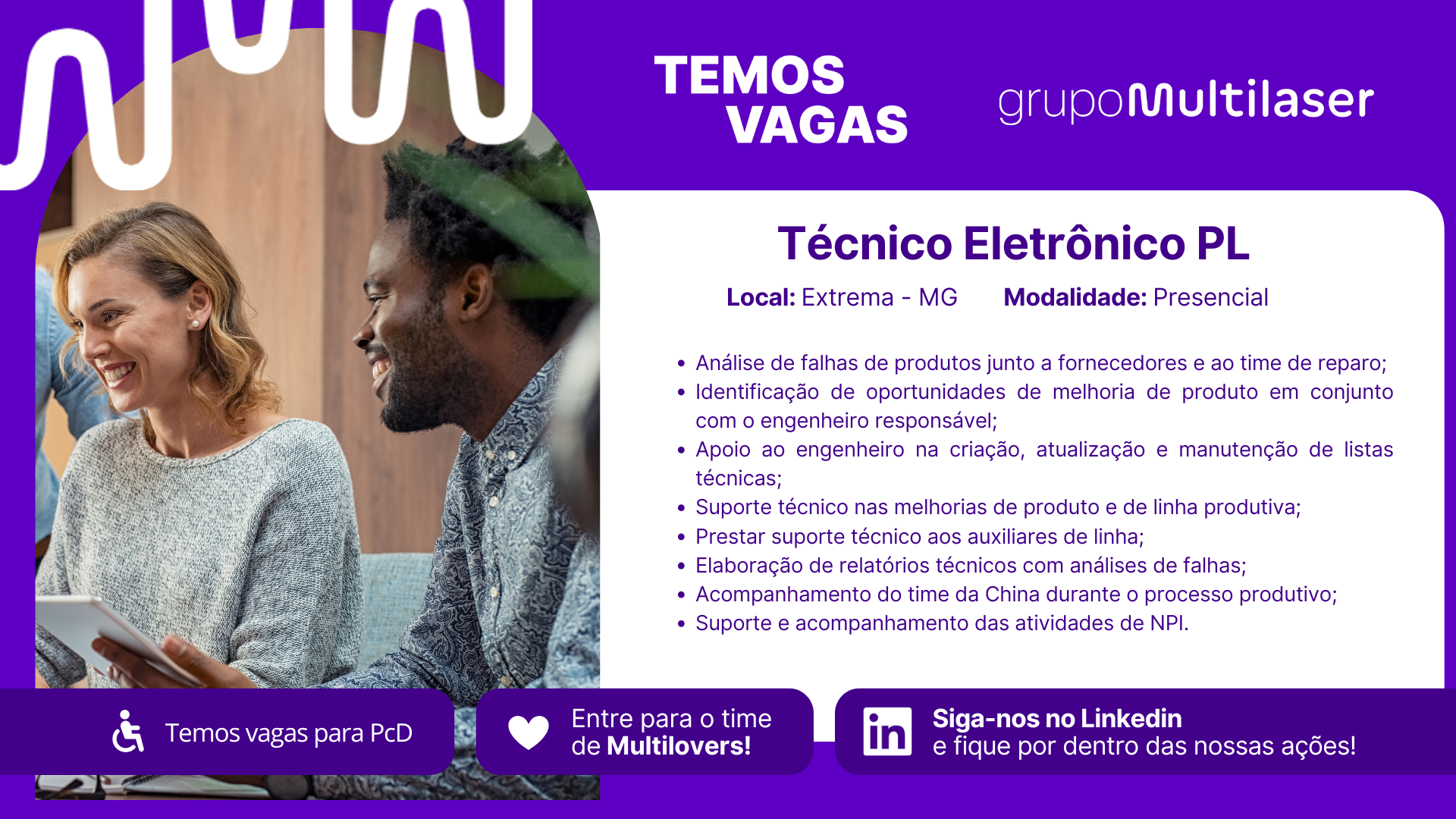 Vaga inclusiva à PCDs